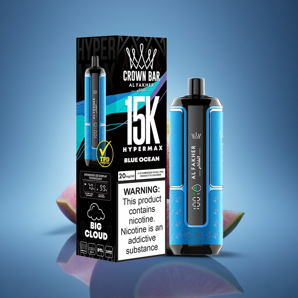 Al Fakher Crown Bar 15K Hypermax ים הכחול עם סוללת 600mAh ועם ניקוטין 6mg