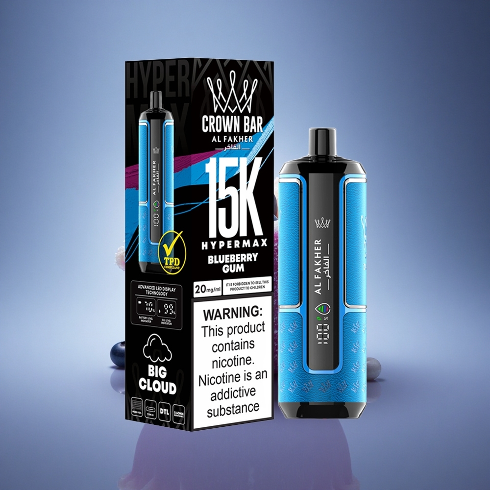 Al Fakher Crown Bar 15K Hypermax מסטיק אוכמניות עם ניקוטין 6mg/ml וסוללה 600mAh