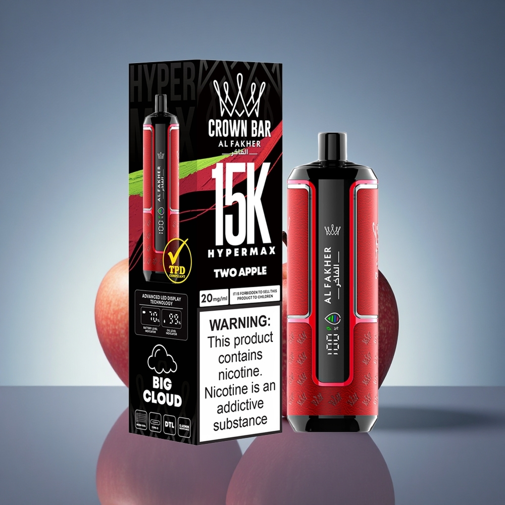 Al Fakher Crown Bar 15K Hypermax שני תפוחים 6מג ניקוטין 600mAh