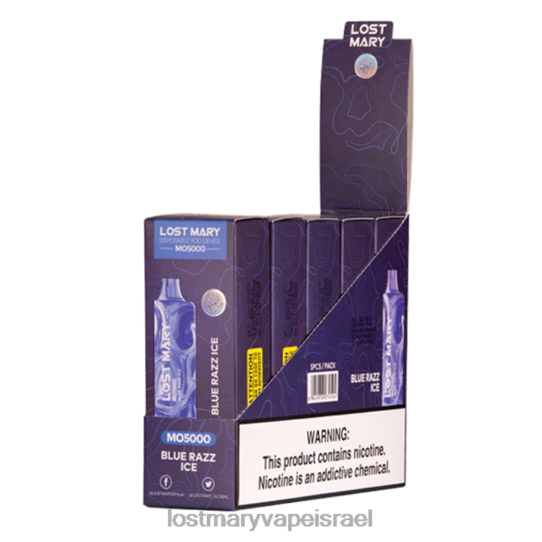 ה- blue razz ice lost mary mo5000 vape הנטען משלב את תערובת הפטל והאוכמניות הממותקת המוכרת עם טעם מנטה מצמרר.