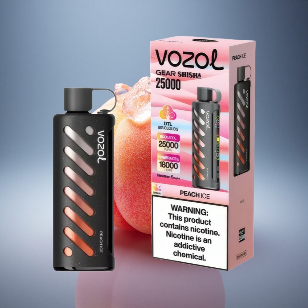 VOZOL Gear Shisha 25000 Puffs אפרסק קרח עם 5mg ניקוטין ו-1000mAh