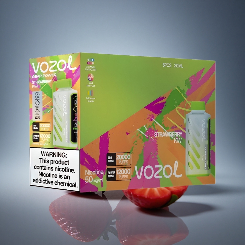 VOZOL Gear Power 20000 Puffs תות קיווי עם סוללה כפולה ומסך מלא